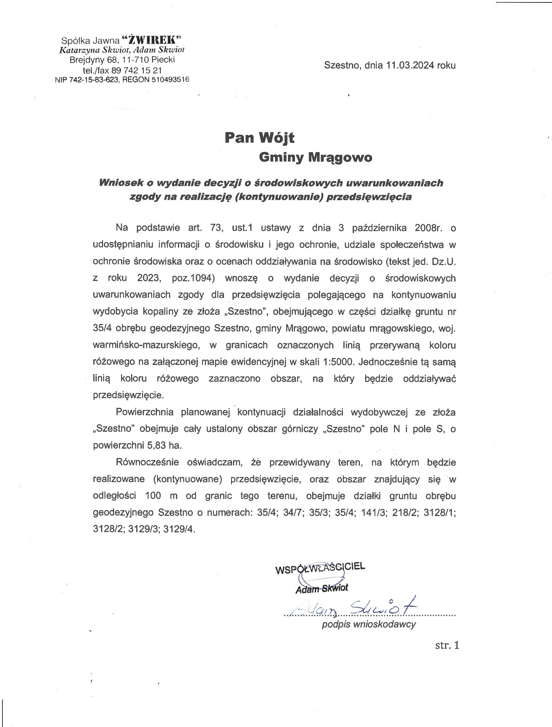 - Karta inforamcyjna przedsięwziecia _ kontynuacja wydobycia kopaliny _ działka 35_4 Szestno