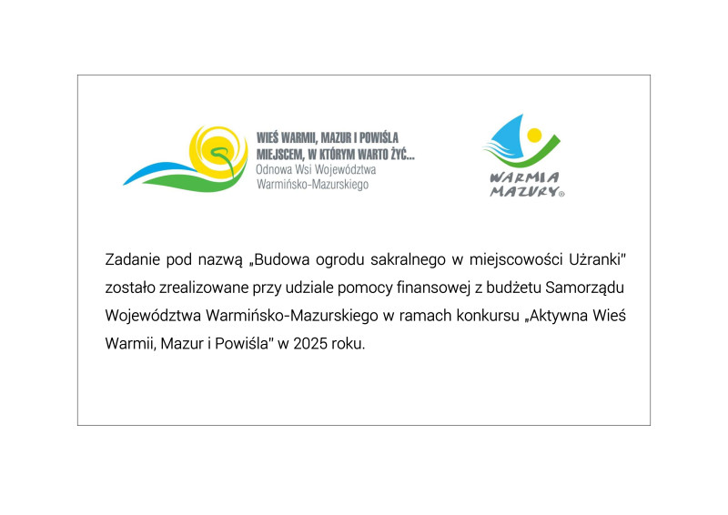 Budowa ogrodu sakralnego w miejscowości Użranki, w ramach konkursu „Aktywna Wieś Warmii, Mazur i Powiśla” w 2025 roku.