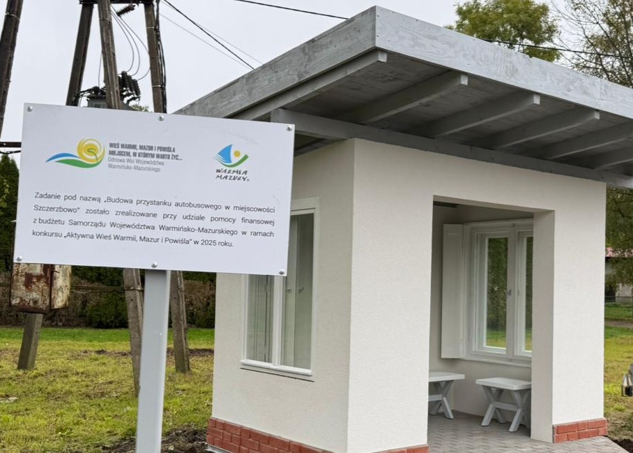 Budowa przystanku autobusowego w miejscowości Szczerzbowo, w ramach konkursu „Aktywna Wieś Warmii, Mazur i Powiśla” w 2025 roku.