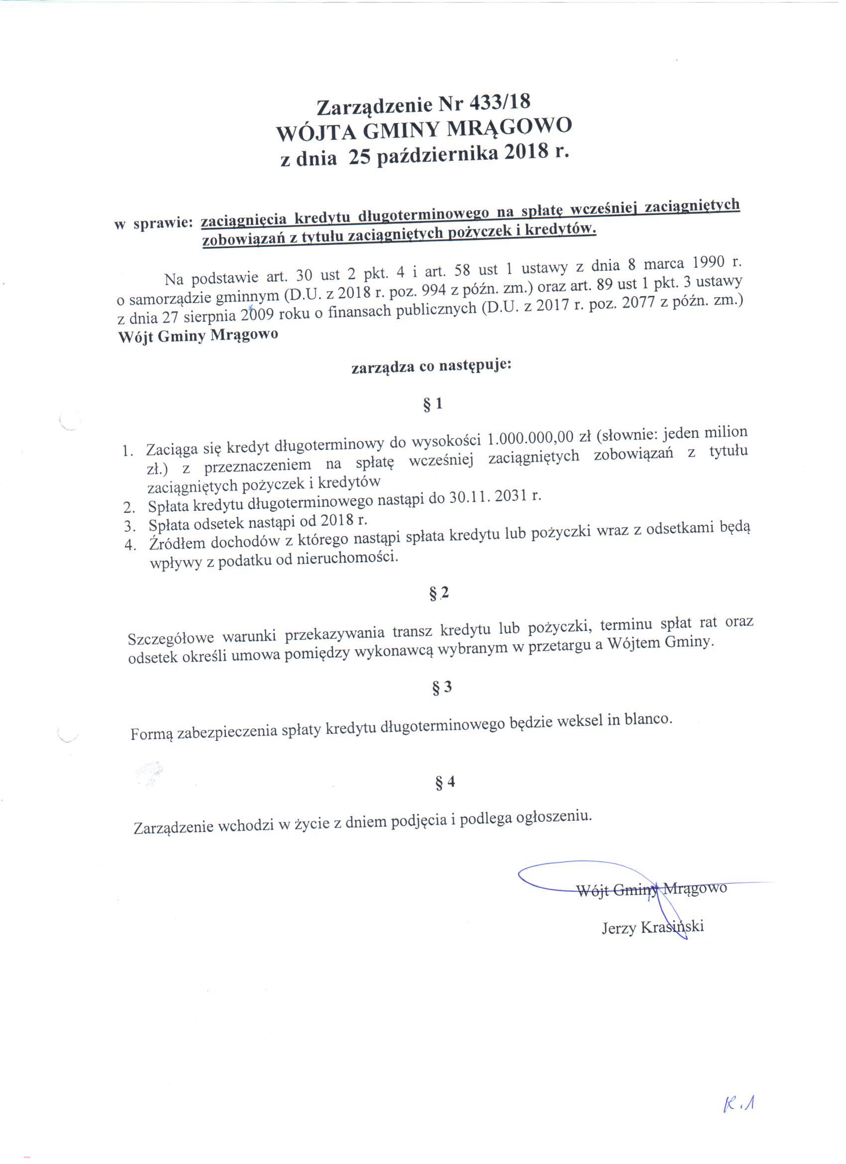 zał. 7.22. Zarządzenie w sprawie kredytu